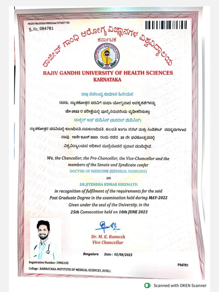 Issued by: Rajiv Gandhi University of Health Sciences (RGUHS), Karnataka